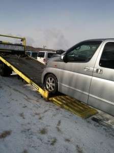 JAFさんに来ていただき 雪のないところまで