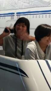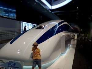 一瞬で走り過ぎたリニアの振動に興奮…のはず…。